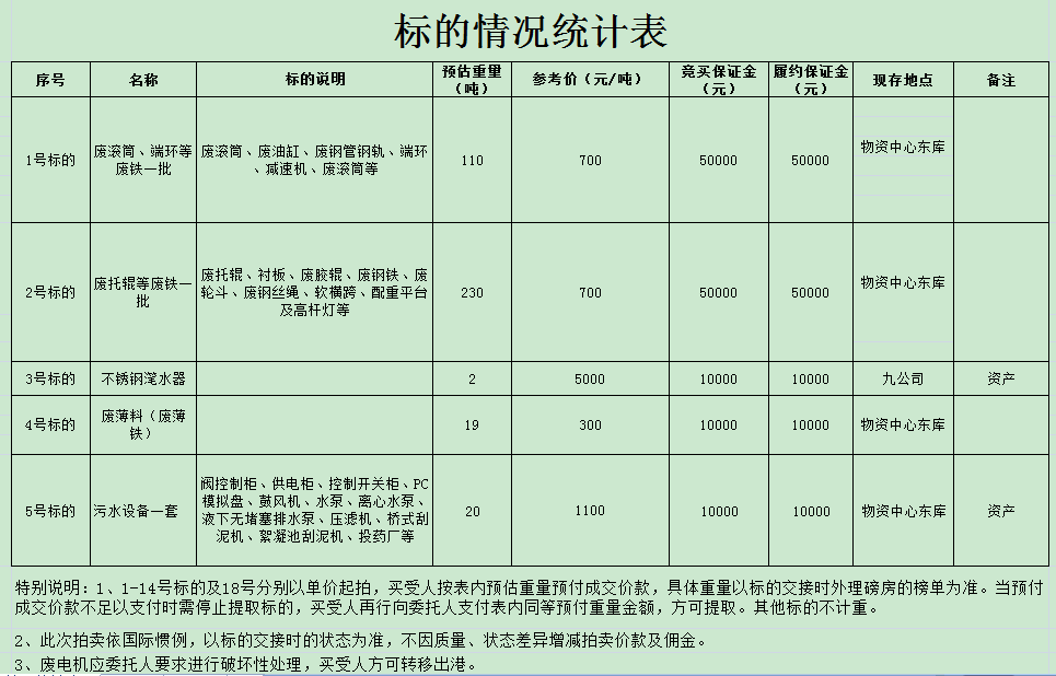 一號(hào)標(biāo)的:廢滾筒、端環(huán)等廢鐵一批